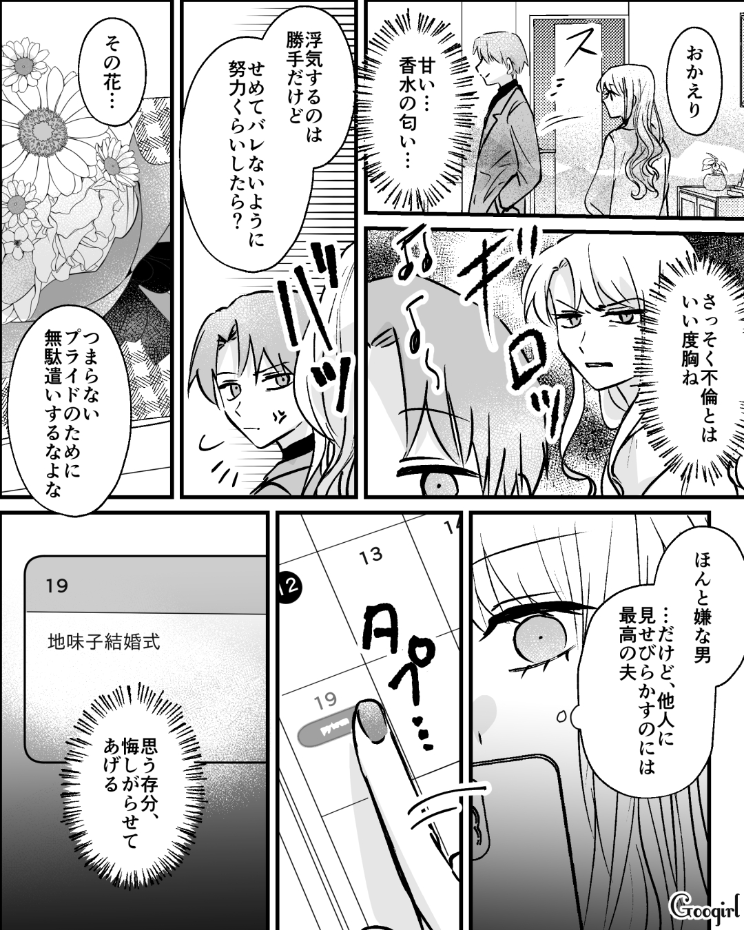 ▽ モラハラに不倫と、地獄のような新婚生活を送っている優樹菜。成美の結婚式だけが、今の彼女を支えています。
