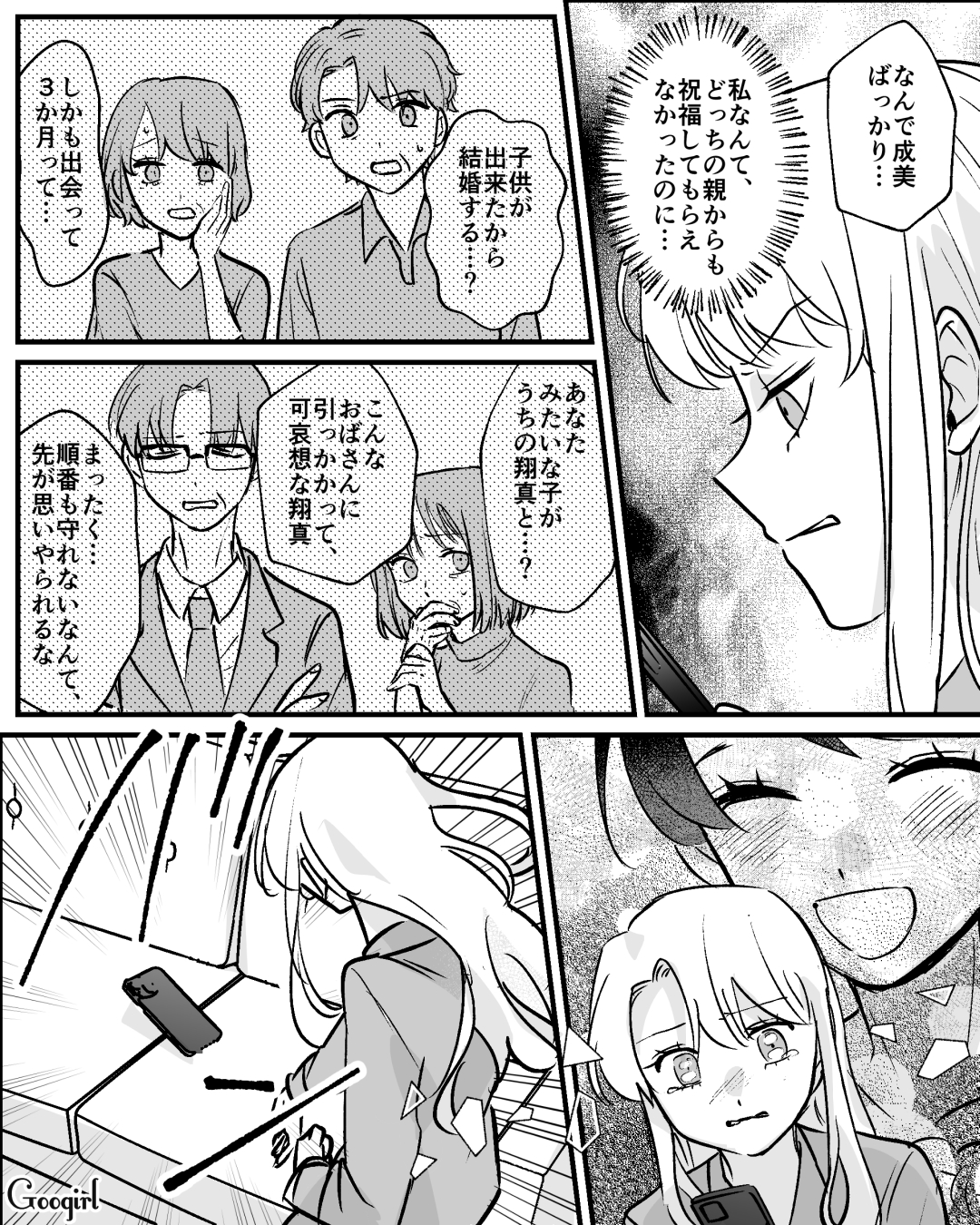 ▽ 成美の幸せそうな姿を目の当たりにし、イライラが隠せない優樹菜。さらに家に帰れば翔真からのひどいモラハラで、優樹菜の心はボロボロになります。