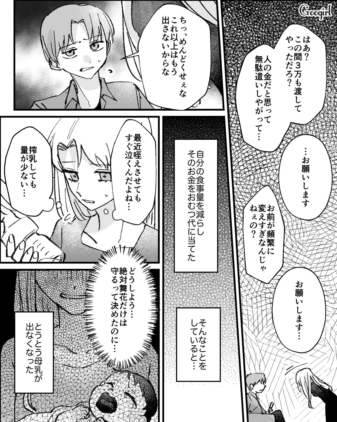 ▽ 出産をし、幸せな気持ちに包まれる優樹菜。ですが、自宅は相変わらずの地獄で、優樹菜は心身ともに疲弊していきます。