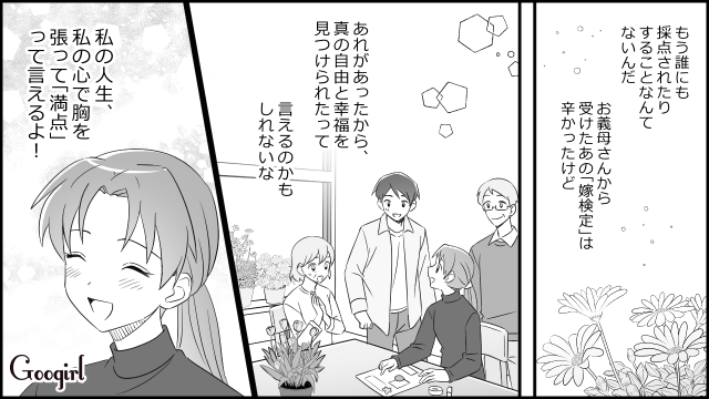 秋奈の義母は嫁を点数化して評価してくる人で、夫の敬太も母親の肩を持ってばかりです。秋奈は離婚のために奔走し、ついに別れることに成功。義母は秋奈から受けた復讐がショックで錯乱してしまい、敬太も手を焼いているようで……。