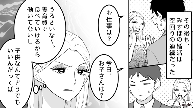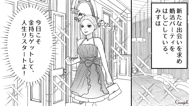 太一なんかと再婚する気はないと言い放ったみずほ。彼女はお金持ちと結婚すべく、婚活パーティーで新たな出会いを探していました。果たしてみずほの目論見通り、うまくいくのでしょうか……?