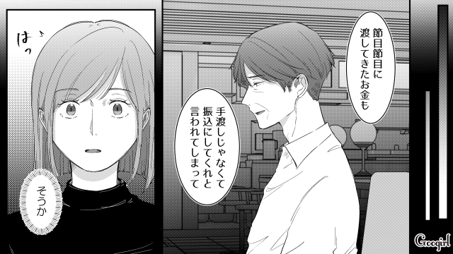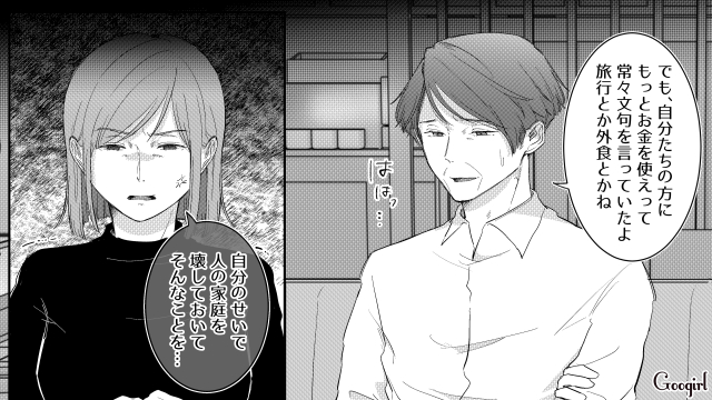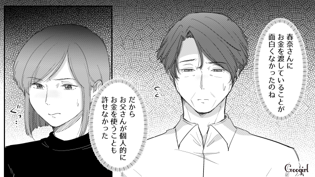 ▽ 父・信一の語る「春奈への贖い」は、梢にとって当然の行為にしかすぎませんでした。しかしその話から、梢は母・美佐子がその父のお金の使い方に苛立ちを募らせていた理由を理解します。人の家庭を壊しておいて、お金も渡したくないという身勝手な言い分。梢は母の考えが理解できませんでした。