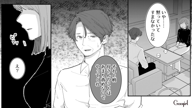 ▽ かつて婚約者に浮気され、絶望を味わった梢。その記憶が蘇ると同時に、前妻・真理子の苦しみが“他人事ではなく”なっていきました。母は誰かの家庭を壊した女。父は、妻を裏切った男。そんな自分たちをまるで悲劇の主人公のように語る父に、梢は自分の結婚祝いについて話すのでした。
