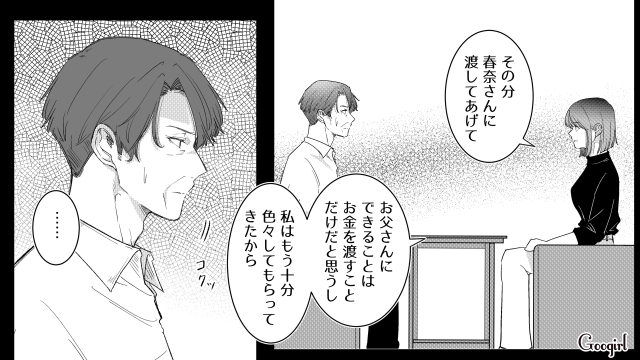 ▽ 梢は父に、自分への結婚祝いは不要だと告げると、その分を春奈へ渡すよう求めました。