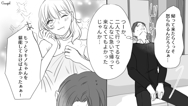 ▽ カナからの連絡を見て申し訳ない気持ちにはならないのでしょうかね……。反省したとしても許されないことですが! グイグイくるマキノですが、一体何を考えているのでしょう……?