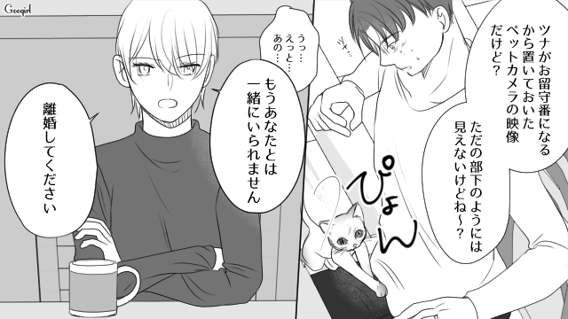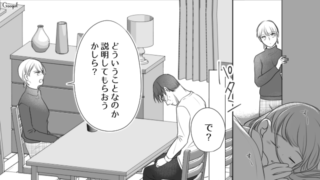 ▽ ペットカメラの映像という決定的な証拠があると、さすがに言い逃れはできませんよね……。不倫相手を家に連れ込むような父親は、ノゾミにとって悪影響でしかありません! しかも不倫をカナのせいにするなんてあり得ないです!