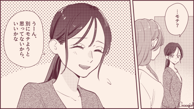 ▽ モテテクさえあれば男は落ちる——そう信じて疑わないエリカ。しかし、そんな思いとは裏腹に、なかなか本命の佐々木哲也が自分に振り向く気配がありません。それどころか彼は、モテテクとは無縁の同期、小坂井桃子のことばかり見ているのでした。