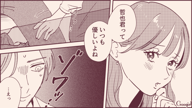 飲み会で一生懸命哲也に対し「モテテク」を使いアプローチするエリカ。しかし哲也は全くなびく様子がなく、むしろエリカには興味がなさそう……。もっと頑張らなくちゃ! とエリカは張り切っていますが、効果はあるのでしょうか。