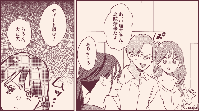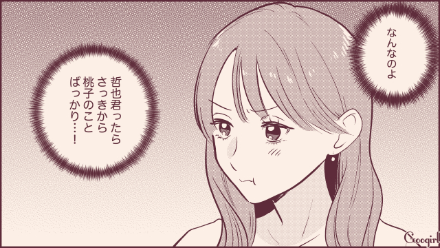 ▽ エリカが哲也にアピールしている間、当の哲也は桃子のことを気にしてばかり。エリカの不満は最高潮です。そしてとうとう哲也が、桃子に「彼氏はいるの?」と尋ねたところ、エリカが「いるわけないじゃん!」と叫ぶのでした。一体飲み会はどうなってしまうのでしょうか。