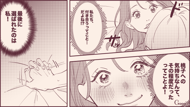 ▽ 「体だけ貸して」「好きじゃない相手と寝るのはむなしい」。哲也は残酷な本音を口にしましたが、舞い上がっているエリカには届きません。「これで私たちは付き合っている」と信じ込み、勝利を確信するエリカ。そして季節は巡り、場面は数か月後の結婚式場へと移ります。そこにいるのは果たして……?