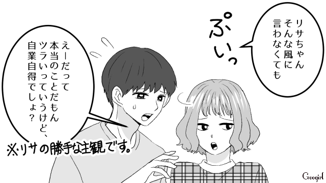 ▽ ミキが妊娠糖尿病について説明しても、ユウトが味方することを気に食わないリサは、2人が浮気してるんじゃないかと言いがかりをつけます。ハルカやカズヤに怒られますが、リサは全く懲りていません。