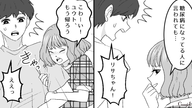 ミキが妊娠糖尿病について説明しても、ユウトが味方することを気に食わないリサは、2人が浮気しているのではないかと言いがかりをつけます。ハルカやカズヤに怒られますが、リサは全く懲りていない様子です……。
