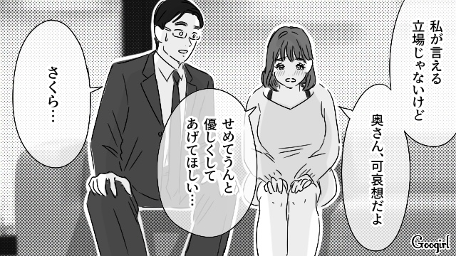 ▽ 美羽を気遣い、優しい言葉を翔平にかけるさくら。しかし……それは全部演技だった!? 翔平が帰った途端、大声で笑い始めたさくらの本性とは? 次回、予想外の展開が待っています。