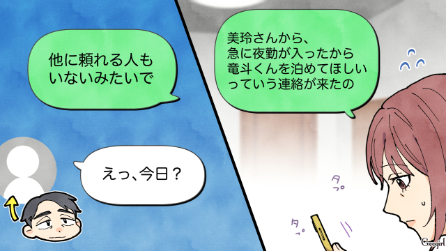 連絡先を交換してから数日、夏美は美玲がシングルマザーで看護師をしていることを知ります。大変な境遇に同情していた矢先、美玲から突然の連絡が入りました。「急な夜勤が入ってしまった」というSOSに、夏美が出した答えとは……?