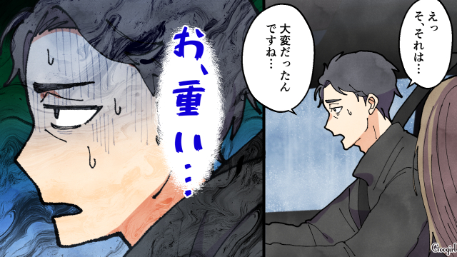 激しい雨が叩きつける車内、助手席の美玲は、突然自身の過去を語り始めます。陽太は重い空気を払拭しようと懸命に励ましの言葉をかけますが、その言葉こそが、美玲の歪んだ決意の引き金になろうとは知る由もありませんでした。