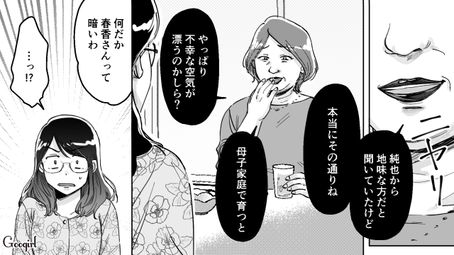 ▽ あたしはあんまり聞こえなかったんだけど、春香ってばよっぽど酷いこと言われたのかしら? 圭子さんがこんな風に泣くなんて、初めて見たわ。なんだか、見てるこっちまで泣けてくるほど、切なくて苦しい涙でつらい……。