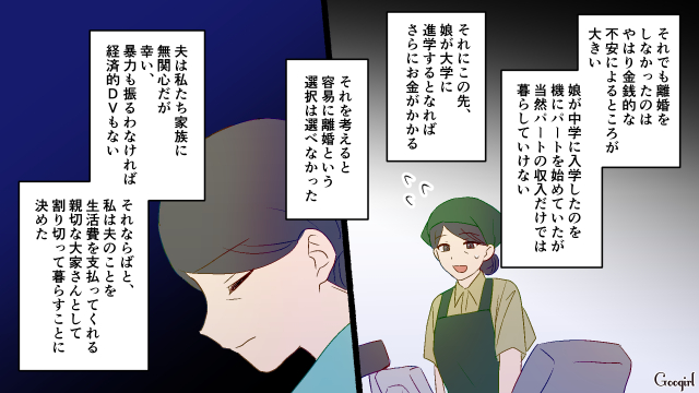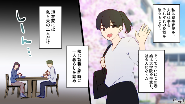 ▽ 最愛の一人娘を無事に育て上げ、再び夫と二人の生活に戻った英恵。しかし夫の定年後の生活を想像し、ぞっとします。