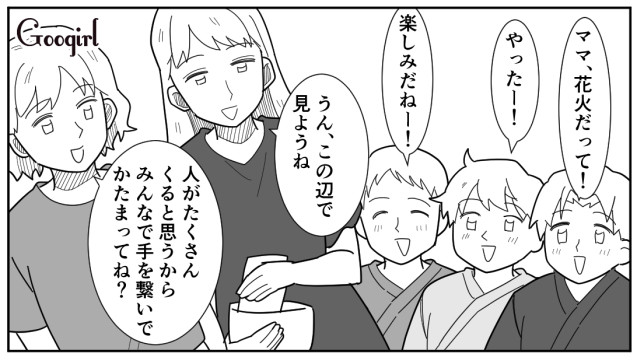▽ 子どもが他人に迷惑をかけたのに、まともに謝罪する気もないようです。花火が始まりそうになっても同じですね……。