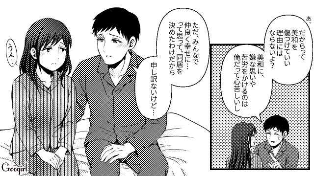 ▽ 義母に言われたことはとてもショックなものですが、夫の和也は美和の味方でいてくれるようです。一緒に暮らしている以上、大なり小なり問題が起こる可能性はありますが……乗り越えられるのでしょうか?