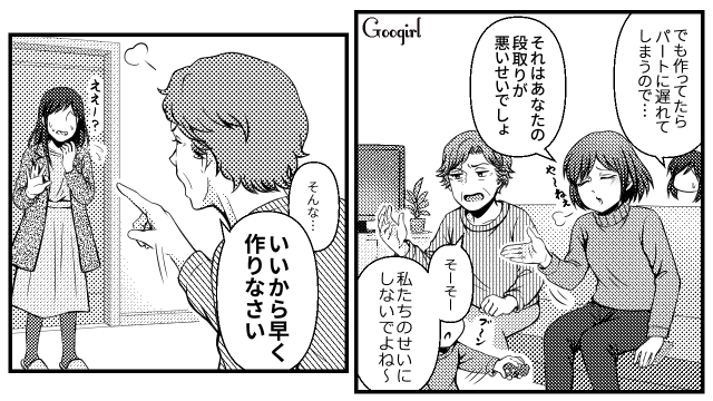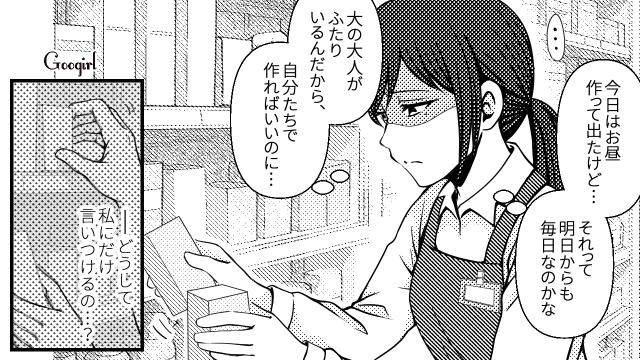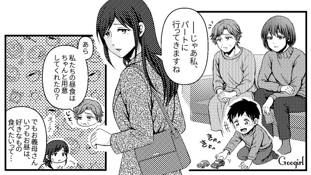 ▽ パートに出るにも関わらず、昼食の用意に、夕食のメニューのわがまま……。普通ならキレてしまいますよね。美和は相当頑張り屋さんです。