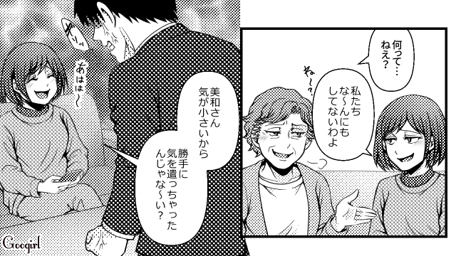 ▽ ついに美和がキレました。もっと早くにキレても良さそうだったとは思いますが……。人間関係を穏やかに円滑に、と思うと、言いたいことは飲み込んでしまいがちですよね。さて次回は、最終話です!
