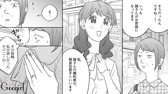 ▽ 自分の憧れの指輪を日菜子がしていることに気が付き、一瞬苛立ちを覚える春香ですが、すぐに日菜子の異常さに気が付き、逃げていきます。そして誠もまた、日菜子のイカれ具合に、限界がきたようです。