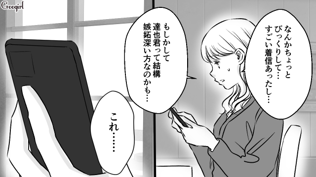 最近できたイケメンで優しい彼氏・達也に、「心配だから男にはなるべく会わないでほしい」と言われるOLの柚月。 少し束縛が強すぎる達也に対し、仕事や日常生活で男性を排除して生活することは無理すぎると伝えます。しかし、付き合ってからほとんどの時間を達也に使っていたことで、寂しさを感じさせやすくしてしまったのかもしれない、とも考える柚月。