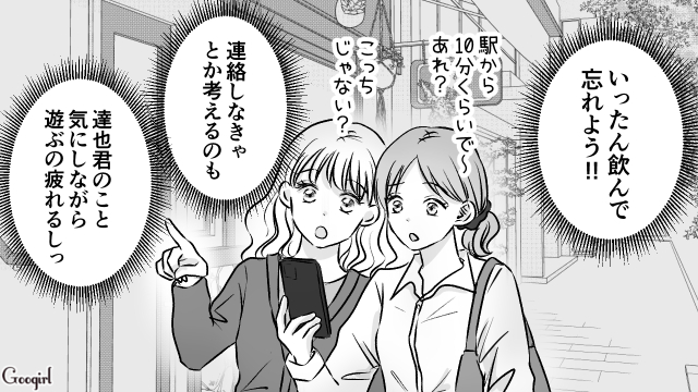 ▽ 友達と遊んでいると伝えているのに連絡を繰り返してくる達也に苛立ちと面倒さを覚える柚月。気持ちを切り替えようと女友達と早めの飲み会へ! そこで偶然安田とその男友達に出会います。達也の言葉がうっすら頭をかすめるものの、一緒に飲むことになりました。カバンの中で震えるスマホは、また達也からの連絡でしょうか……?