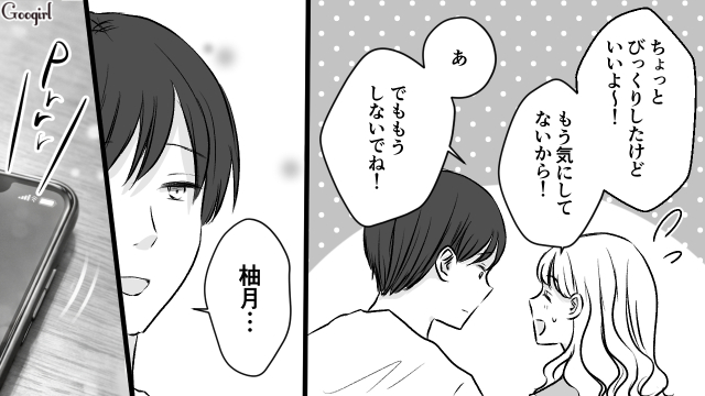 そんな気持ちを切り替えようと女友達と早めの飲み会へ! そこで偶然、安田とその男友達に出会います。飲み会終了後、再びスマホを見ると、達也から大量の連絡が来ていました。安田に心配をかけまいと、明るく解散する柚月。達也になんと言おうかと迷いながら帰宅すると、家の前には約束もしていないのに達也が待っていました。
