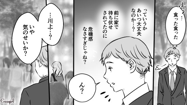 OLの柚月のイケメンで優しい彼氏・達也はGPSを入れて位置情報を確認し合おうとする激やば男だったことがわかります。達也と別れることを決めた柚月は、メッセージで達也に別れを告げ、連絡先をブロック、GPSアプリも削除します。安田と里奈が心配してくれている一方、達也は柚月と別れることを全く認めていないようです……!