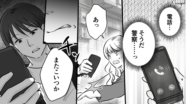 ▽ 里奈の家に泊まり1週間。もう大丈夫だと思った柚月は、物件探しもかねて家に戻ることにします。ところがその帰り道、達也にばったり! 路地裏に連れ込まれてしまい、スマホまで取られてしまいました……!