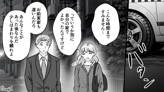 ▽ 達也を圧倒し、警察に連行した柚月と安田。1人になるのはよくないと安田がタクシーで里奈の家まで柚月を送ります。やっぱり迷惑だからと1人で家に帰ろうとする柚月に、里奈は開口一番バカと怒ります。
