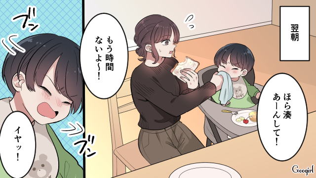 共働き夫婦の朝は毎日バタバタ。一分一秒を争う美穂子に対し、夫の誠はどこか他人事のようです。そんな中、美穂子は誠にささやかなお願いをするのですが、果たして誠は役に立つのでしょうか……?