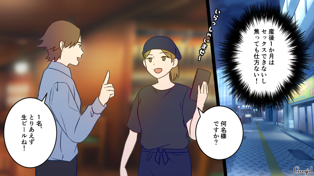 ▽ 出産したばかりの妻を労わることなく、形だけの反省を見せる昌平。出産の付き添いで疲れたと言いながら、1人居酒屋で新しい人生の門出に祝杯をあげるのでした。