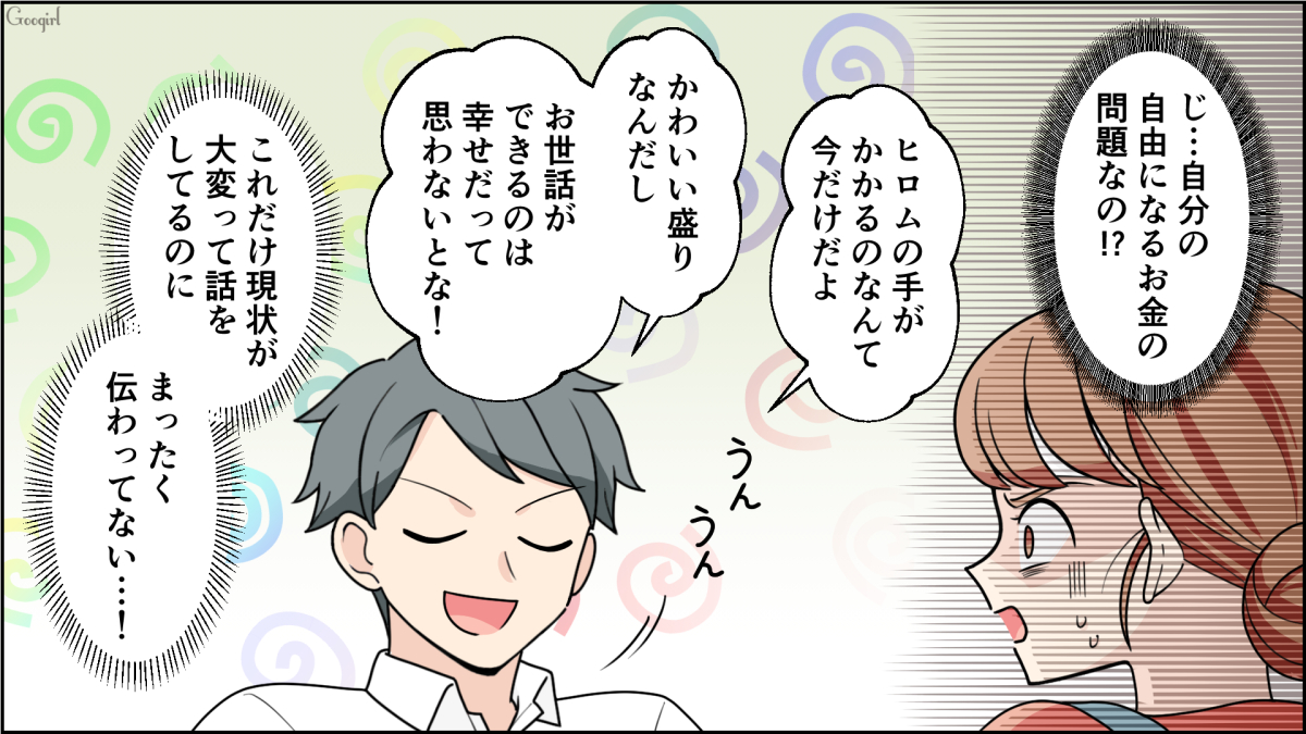 働きながら育児をするワーママは、日常のタスクがあまりに多いですよね。毎秒、命を削られているようなものです……。でも夫に理解がないタイプだと、妻になにもかも任せきりな上、実状をまったく理解していないこともあるようです。千尋と国男は、2歳の息子を持つ夫婦。時短で働きつつ育児をするのを負担に思う千尋は、ついに直接国男につらい現状を訴えましたが、国男は……。