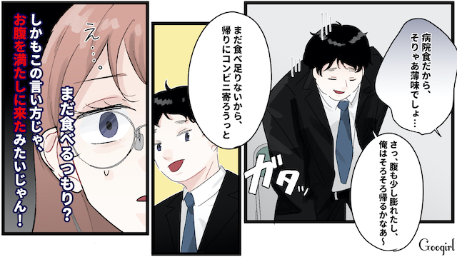 【漫画】入院中の妻の病院食を食い尽くした夫…看護師さんに化け物と思われ?【第3話】