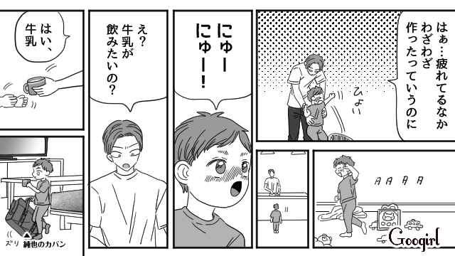 ▽ 「早く帰って育児を手伝ってほしい」と思っているのは、奥さんも同じ。逆の立場になって、気づけるといいのですが……。