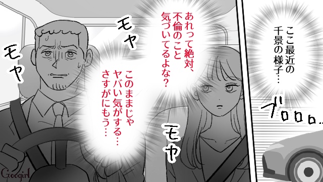 夫が不倫相手と行っていたレストランに両親も交えてみんなで行き、千景は夫に二度目の忠告をしました。相当震え上がって動揺していた夫ですが、これで不倫はストップするのでしょうか……?