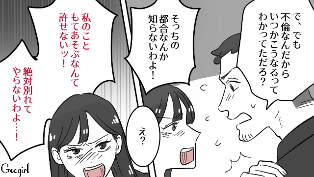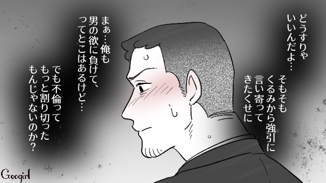 ▽ 結局くるみは別れてくれませんでした。悠斗は昔から、流されやすいタイプのようですね。だからって、結婚しているのに不倫していい言い訳にはなりません。
