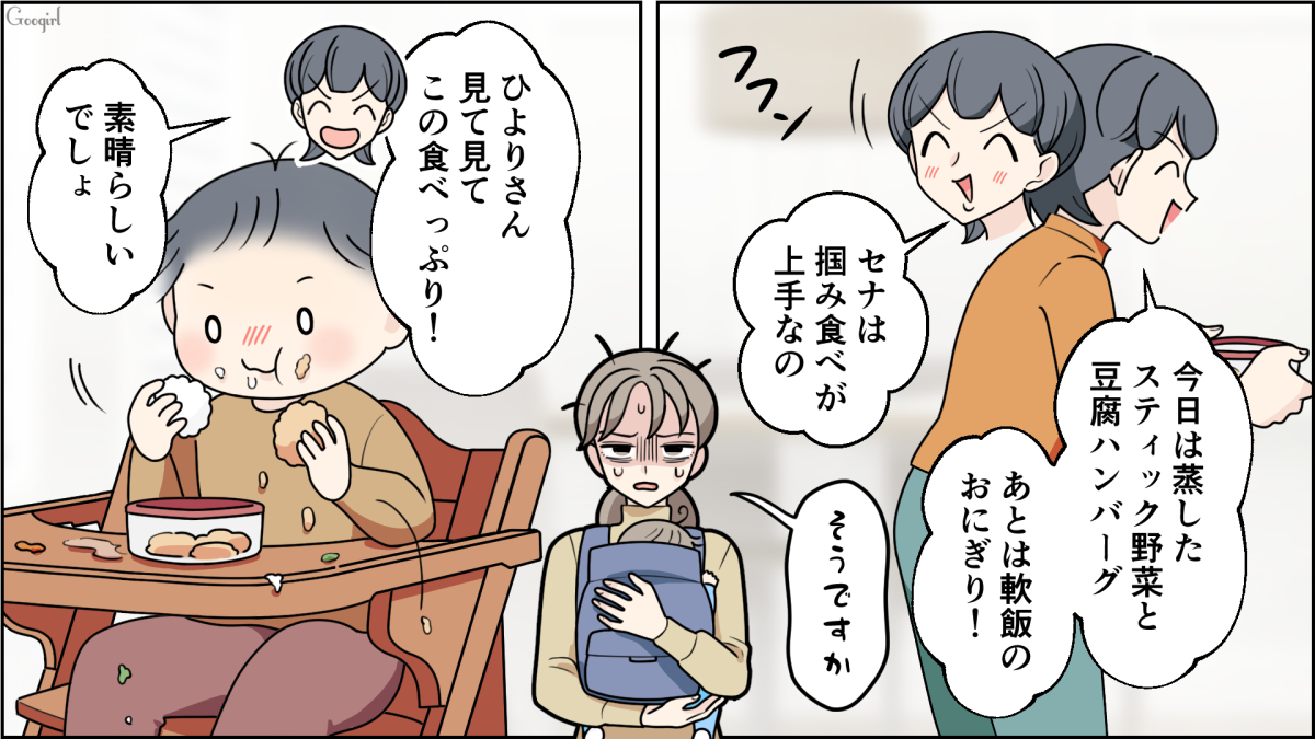 ノーアポでひよりの家へ上がり込んだアキ。今回の目的は「セナが離乳食を食べるところを見せてあげる!」とのことですが、あまりにも余計なお世話ですよね。そして実際始まったのは、ひよりを巻き込んだ地獄の離乳食タイムでした……。