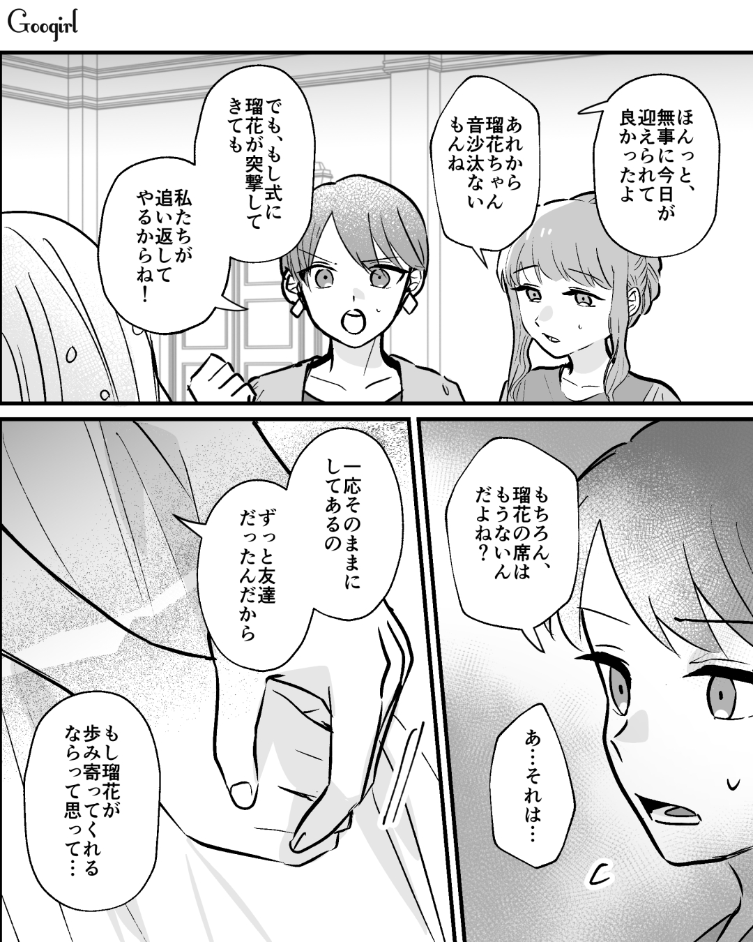 ▽ 幸せな結婚式当日。なんと瑠花が乱入してきました。すごい執念ですよね。