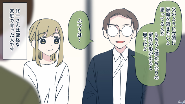 ▽ 厳しい家庭で育ち、父をロールモデルにしている修一。今の時代にはめずらしい、立派な側面ですが……これが性格の不一致、価値観の違いというものでしょうか。