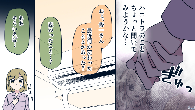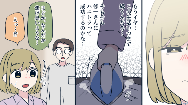 花恋の作戦で、修一に心配させて食事までこぎつけました。でもまだ修一はハニトラに引っかかっているとは言えない状況です。一方まどかは……。それでは今回は「『夫と離婚したい妻』がハニートラップを仕掛けたら……思わぬ結果になった話」第7話をお届けします!