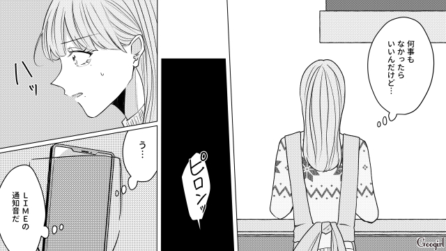 ▽ 家に帰って料理をしていると、またもやママ友からメッセージが……。いつもなら夏美と沙羅で盛り上がっているのですが、今日は夏美がいなくて香澄が必死に沙羅の相手をしています。そのせいでハンバーグを作れずに、日向に悲しい思いをさせる香澄。そんな自分が心底嫌いで、ウンザリしている様子ですね。
