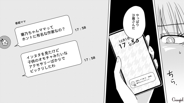 有名なハンドメイド作家だった月乃。そんな月乃をチヤホヤと囲むママ達。そして、これ以上ないほど不機嫌な沙羅。いよいよ、ママバトル勃発の予感です。