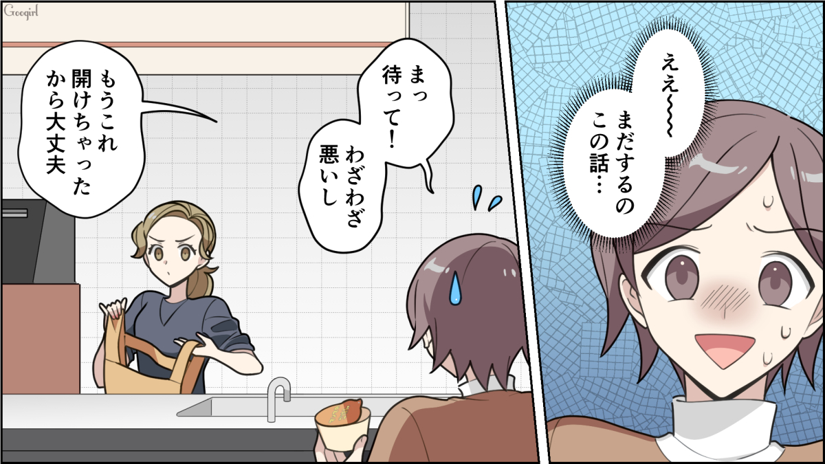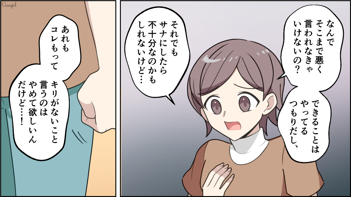 ▽ 市販品を食べさせているというだけで、散々な言われようのアズサ。ついに我慢も限界を迎え反論をしますが、それでもサナの態度は少しも変わりません。