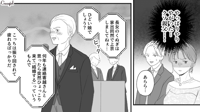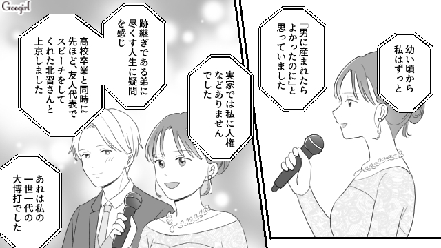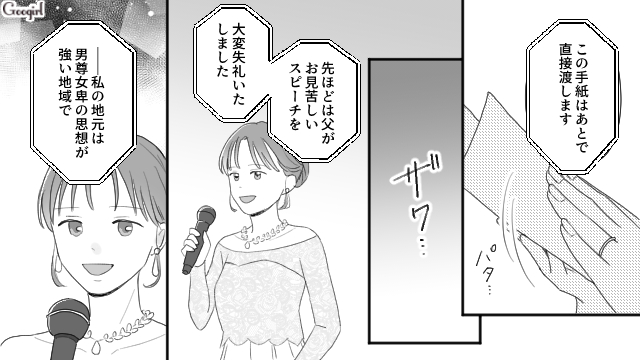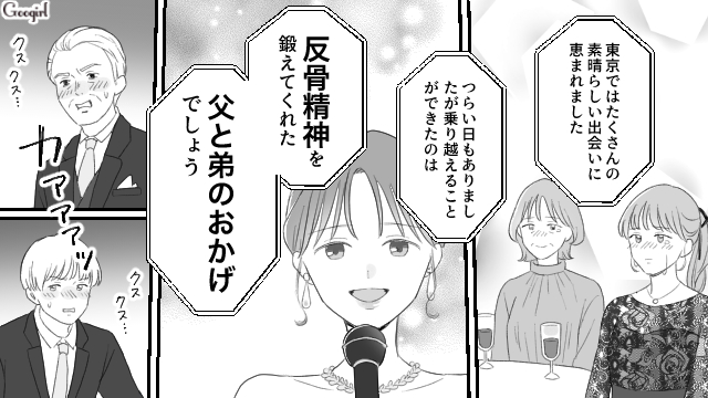 【スカッと漫画】薄情で無能な娘? 結婚式のスピーチで復讐! 男尊女卑の地域で育った姉の話【第4話】