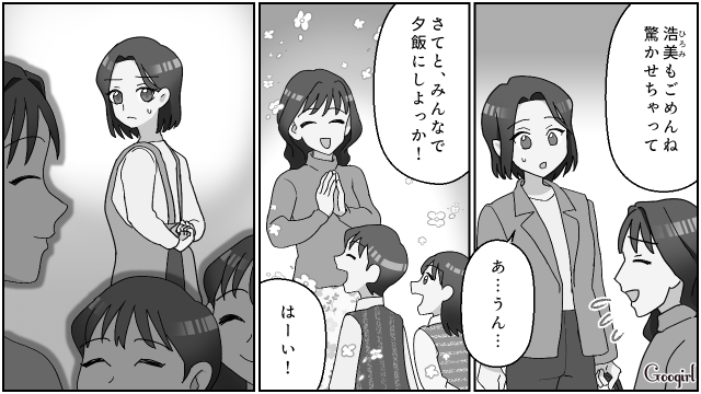 ▽ 風磨に自分のことをママと呼ばせようとしていた景子。このときは、子供のいない姉の気持ちを慮った浩美ですが、次第に景子に対して違和感を抱くようになっていきます。