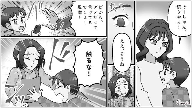 ▽ 家族の輪の中に居場所を失くすだけでなく、風磨から「消えちゃえ」という呪いの言葉を吐かれてしまう浩美。ショックで身動きひとつ取れません。