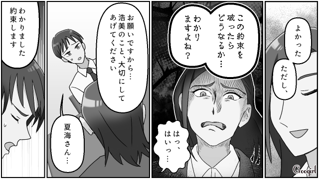 ▽ 景子とすぐに別れること、それを条件に、浩美に不倫の事実を言わないことを約束した夏海。しかしどうやら、その約束は守られなかったようです。